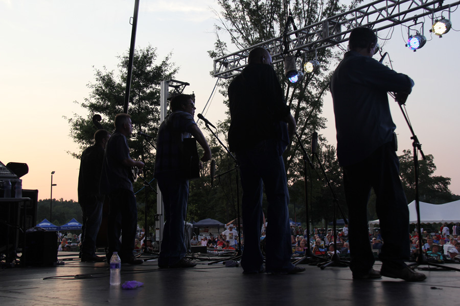 Day One headliners were the Steep Canyon Rangers. The band drove 14 hours through the night after performing Friday night in Michigan, and wore their traditional dress shirts and ties on stage. Fiddle player Nicky Sanders added a sports coat to his wardrobe. On this sweltering night, his fiddle playing was hotter than the weather.
