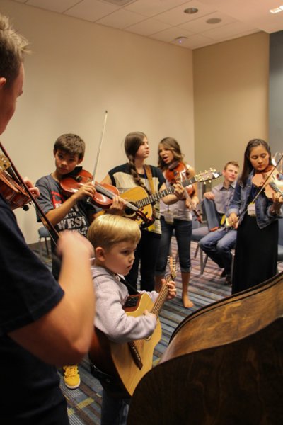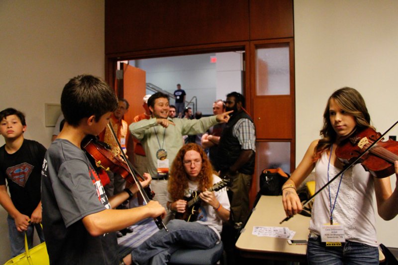 It worked really well. I was there for the grand opening of the room and there was a whole posse of young hot pickin’ kids standing there waiting to have a space of their own to meet, mix and mingle, and most importantly for many of them to jam! Danny Hootenanny Clark was there to give the kids their orientation talk, telling them that this room was for them, would be there for them all week, and that the pizza in there was also for them. The room filled with big smiles and heads shaking up and down. One could tell these words were golden, and the kids had a great jam going within minutes.