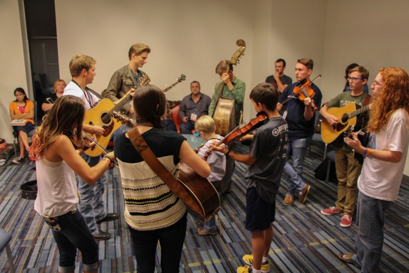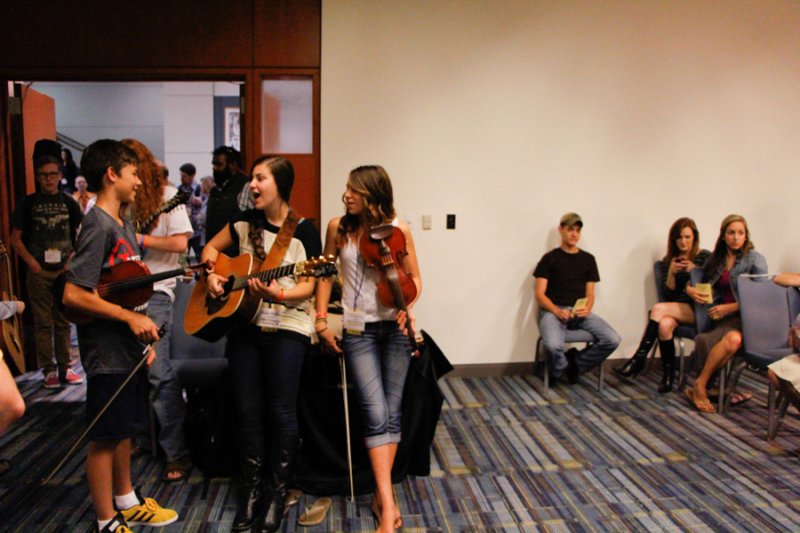Della Mae jams in the IBMA Youth Room at World of Bluegrass 2013 - photo by Danny ClarkThe IBMA has been doing a great job of trying to come up with ways to encourage young pickers to be play bluegrass and to be a part of the IBMA. The future of bluegrass, after all, does lie in their hands.