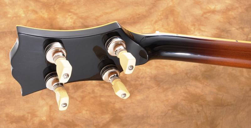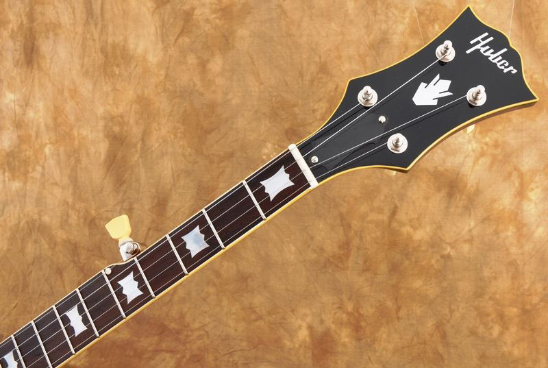 Otherwise, the banjo is pure Huber, employing their HR-30 tone ring and Engineered Rim in the pot assembly, with a period-correct blackburst on the mahogany neck and resonator. It even has the proper cream-colored tulip tuner buttons to complete the homage.