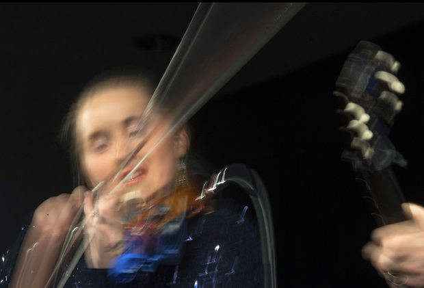 As her father in the front row realized what she was doing, she kept her eyes on her fingers as they danced though the first part. Where any fiddle player could have faltered, McLain stood close to encourage her with a smile and rhythm guitar.