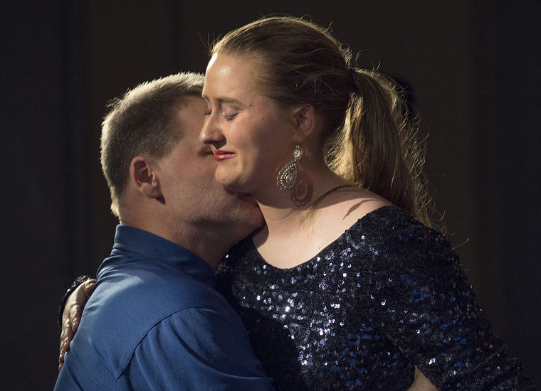 As she neared the end of the tune, where a quick trill demanded her full attention, the crowd pitched in with their own encouragement with hoots and yells, then rose to their feet as the ensemble helped her bring it to a loud and sudden close. Samantha stood and absorbed the applause before her father came to the edge of the stage to hug her. McLain reflected on the months of emotional frustration to satisfy a daughter’s promise to her mother. “Going through this process has been inspiring to me to watch her do this for her momma,” he said.
