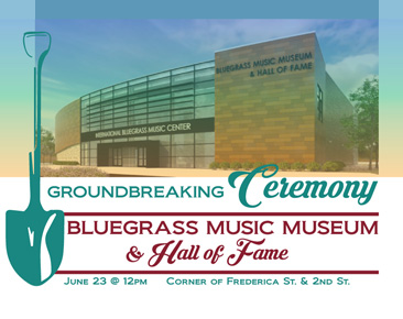 A ceremonial groundbreaking is scheduled on June 23 at noon with the museum staff, Owensboro Mayor Ron Payne, the Daviess County Fiscal Court and Judge Executive Al Mattingly, and a number of bluegrass personalities. Larry Sparks will be in attendance, along with a several others who have not yet confirmed.