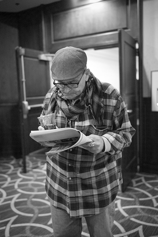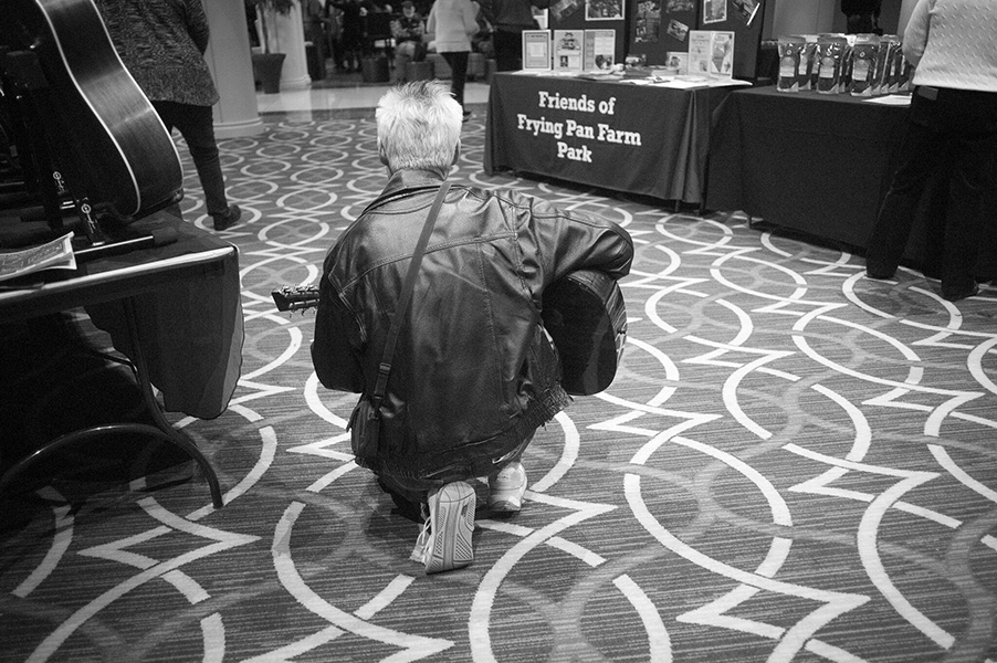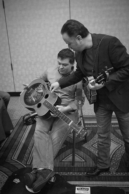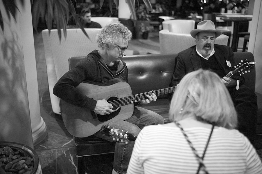 Jeromie Stephens was on hand during this past weekend’s DC Bluegrass Festival in Tysons Corner, VA. He shared a great many images, many of which captured artists backstage and socializing, of the sort that festival goers rarely glimpse first hand. He also continues in his passion for recording other photographers at work, mostly in black & white.