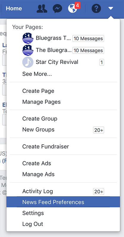To be absolutely sure they show it to you, simply go to your Facebook News Feed Preferences, and select Bluegrass Today as a page you want to see first. It only takes a few moments, and guarantees that our posts will show up at the top of your news feed each time you log in.