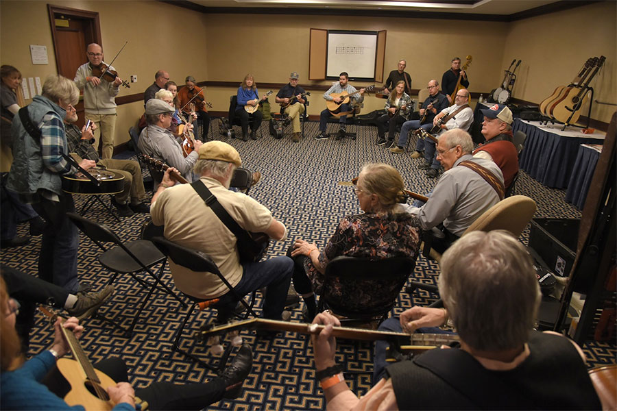 A couple of the folks who traveled the furthest were Alan Tompkins, event promoter and IBMA Board Member, and Gerald Jones, of Texas’ Acoustic Music Camps. Gerald helped out by teaching workshops and hosting jams, and Alan was there to jam as much as possible in 48 hours. Alan sent along this note after getting home: