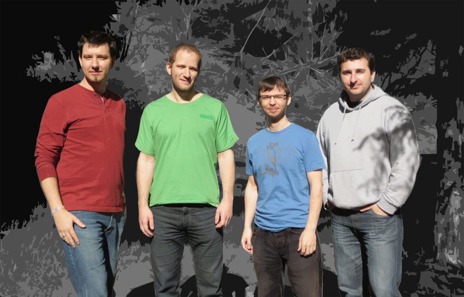 Bill Faster is composed of four young musicians from the Slovak Republic. Dusan Hronic plays guitar, Michael Barok is on mandolin, Richard Cifersky on banjo, and Anton Naroda on bass. Milan Benkovic is also a frequent guest on reso-guitar when the group performs live. All five are established bluegrass professionals in eastern Europe, having played with other popular groups and participated in teaching and workshops.