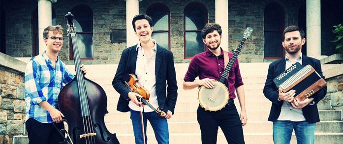 Charm City Junction plays a hybrid style defined by its diverse members: a bluegrass fiddler (Patrick McAvinue), and old time banjoist (Brad Kolodner), a Celtic accordionist (Sean McComiskey), and a trained, classical/jazz bassist (Alex Lacquement).