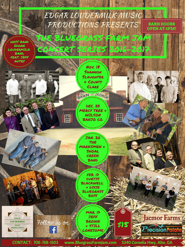 The concert series will wrap up a month before the 2017 Bluegrass Farm Jam Festival, again at Jaemor Farms. Hopefully these winter shows can warm things up and keep the picking going in north Georgia when the cool weather hits later this year.