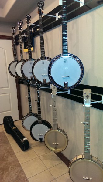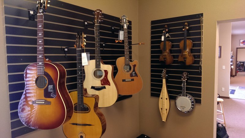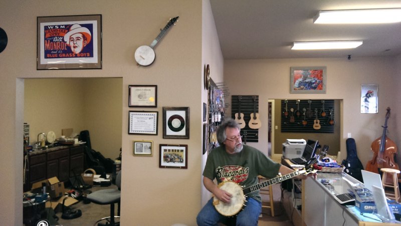 Even with a spacious new showroom and tons of extra display space, the largest part of their business is through online mail order, having developed a reputation for competitive pricing and expert set up on new banjos, mandolins, guitars, and such. But they also have a steady walk-in market, which they hope will expand in the new building.