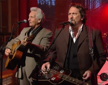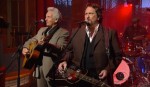 Jerry offered up a bluesy version of Leadbelly’s On A Monday, with Del McCoury at his side singing harmony, just as he did on Douglas’ upcoming album, Traveler. Letterman’s colorful musical director Paul Shaffer joined them on keyboards, as did Jerry’s touring band musicians Luke Bulla on fiddle and Omar Hakim on drums.