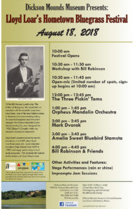 Dickson Mounds Museum in Lewiston, IL will be hosting their first ever bluegrass festival this weekend in celebration of hometown boy, Lloyd Loar, who was raised in their community as a young man.