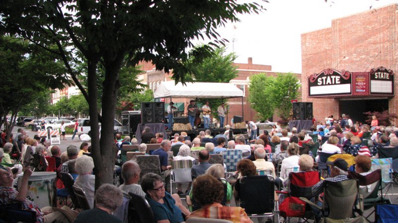 It’s with these thoughts that we bring you this month’s installment of LocalGrass, focusing on one of the best community venues where the bands do indeed play into the night, every Friday night from May to August in downtown Kingsport, TN.  The venue, actually a kind of street festival, is one at which all are welcome, there’s no cover, and all you need is your lawn chair.  Hailed as an area favorite, the festival is known as Bluegrass on Broad.