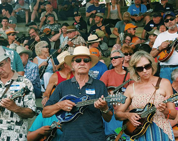 The projected new Guinness Book World Record for Largest Mandolin Ensemble, set yesterday at the Old Fiddler’s Convention at Felt’s Park in Galax, VA, was celebrated by WSLS television, the NBC affiliate station in Roanoke, about 2.5 hours away.