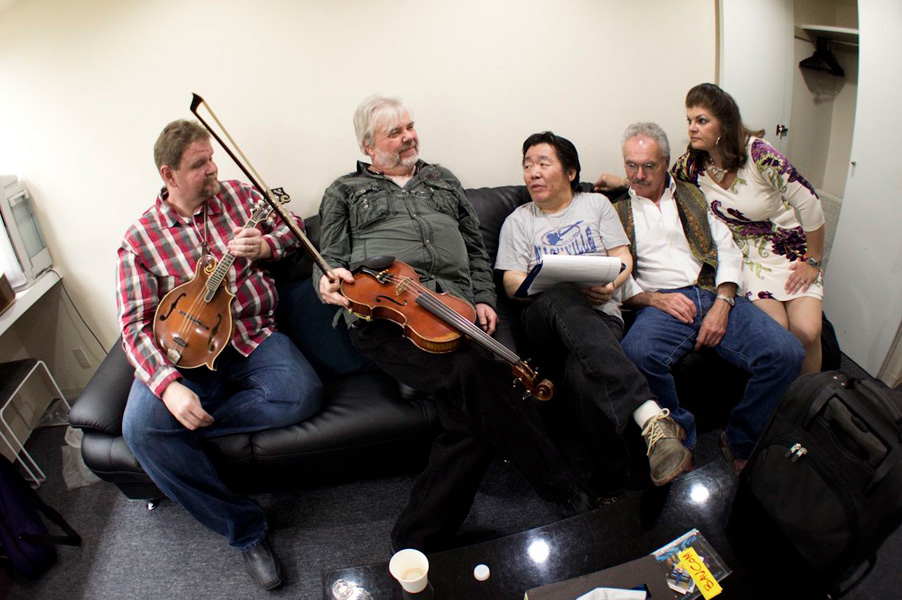 He is there now, in fact, finishing up a 2 week tour with some notable musical friends here in the States, Don Rigsby, Terry Baucom, Rickie Simpkins among them. Cindy Baucom, who is playing bass on the tour, sent along a number of photos that capture the fun they would seem to be having.