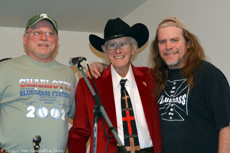 Bill Farmer and Bill Warren presented the cane to Melvin on behalf of the Kentuckians of Michigan and the Southeast Michigan Bluegrass Music Association.