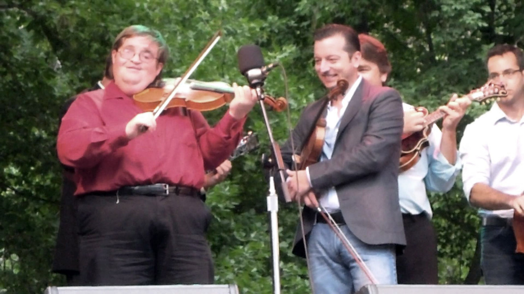 Michael Cleveland and Jason Carter with The Travelin' McCourys“Jason and I have the same heroes, and listen to the same stuff, and we’ve had a few times where we did twin stuff with no rehearsal. It’s just really easy to play twin with him. We’ve talked about maybe doing an album of twin fiddle together someday.