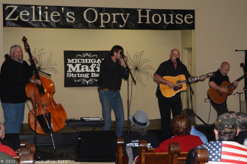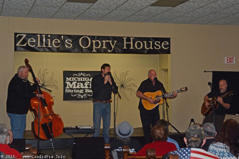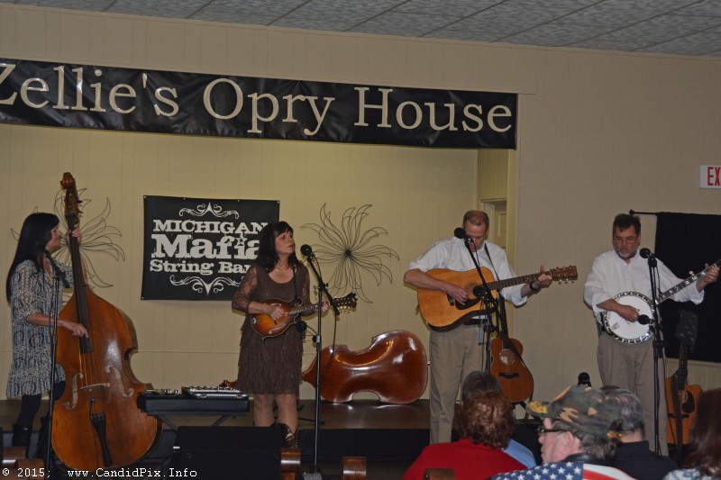 Then Zellie’s Opry House in Howard City, Michigan opened its 8th season on Saturday December 5th with a matinee show. Zellie’s house band opened the show with a rousing set of bluegrass music. The Michigan Mafia String Band then put on two rollicking sets of their own brand of music.