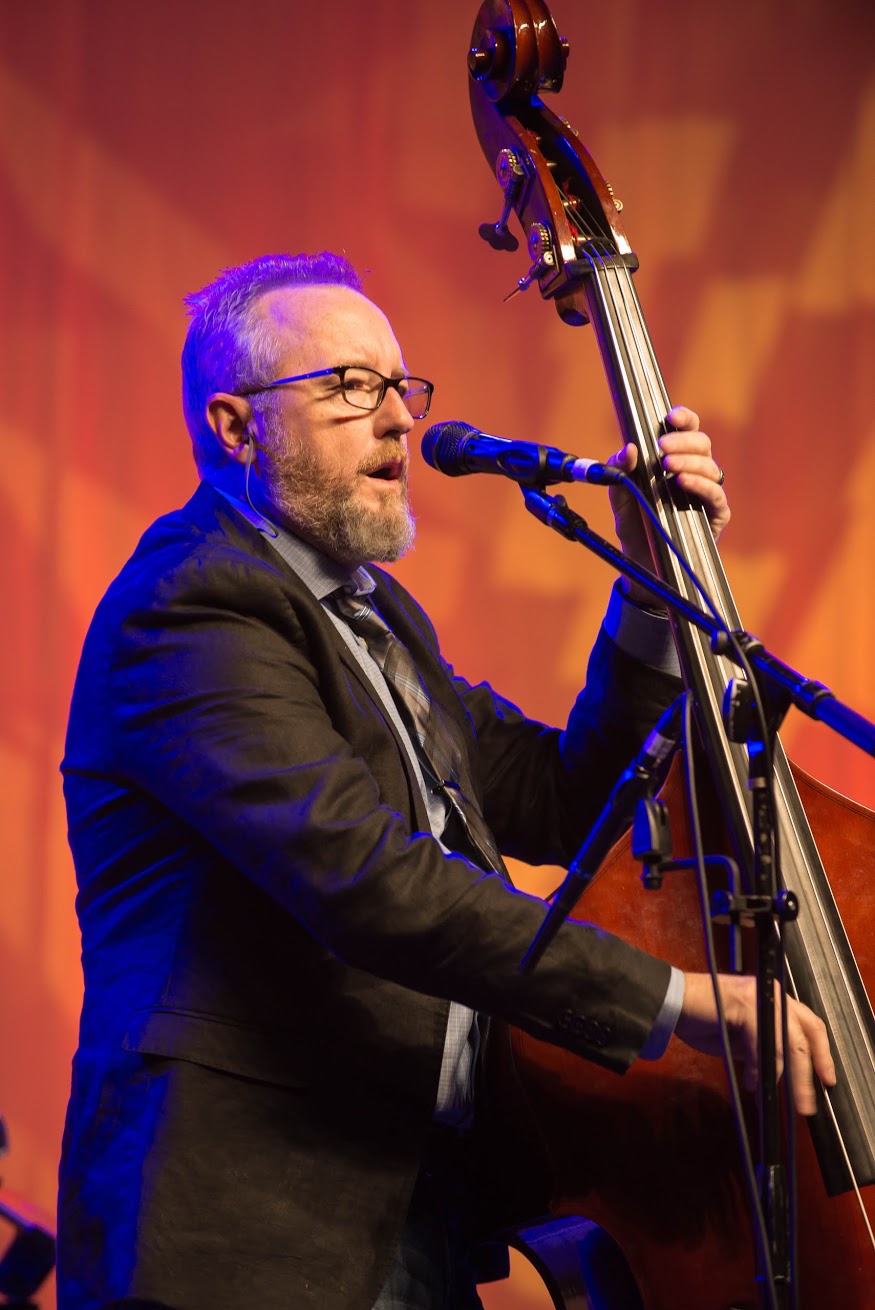 Mike Barber with The Gibson Brothers at Wide Open Bluegrass 2015 - photo © Todd Powers