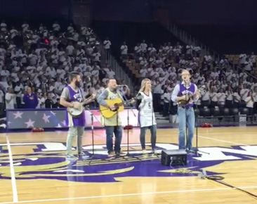 The popular North Carolina group has opened games with the anthem for both the Atlanta Braves and Atlanta Falcons this year, and was captured on video last night at their hometown school, Western Carolina University, performing at a big pep rally before their season begins.