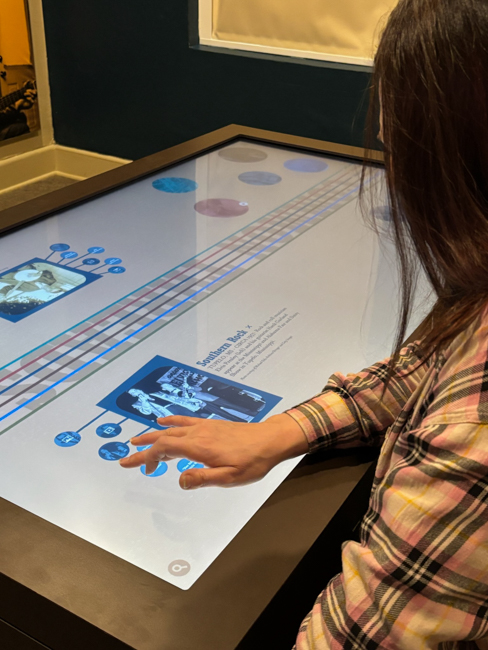The Common Threads Classroom is a touch-activated digital table that connects the artists who have shaped the area’s musical heritage with local history, for individuals or small groups. Stories, videos, and photographs allow visitors to explore these lessons at the museum.