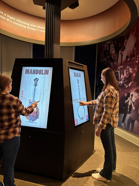 And finally, The Pickin’ Story, a series of five touch-screen panels where visitors can learn more about the instruments that make up the traditional bluegrass band. They offer information about how the instruments are played, the styles of playing used on each, and musicians that helped define their use in bluegrass. There is also a virtual jam session option, which sounds quite interesting indeed.