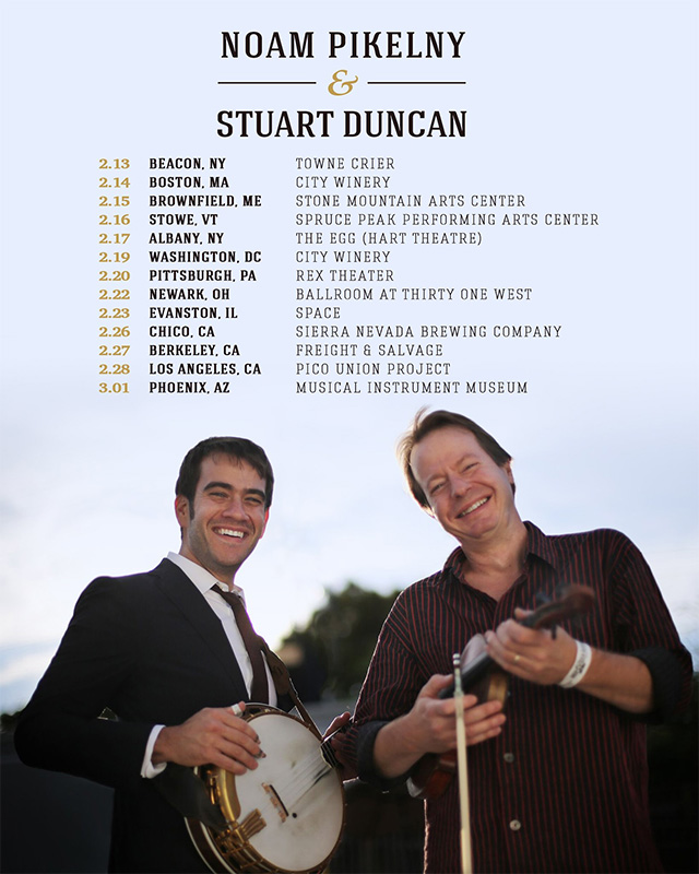 After introductory concerts this weekend (Lexington and Atlanta), the two fiddle pals will do a run of shows in the second half of February, 2019. Tickets for many of these shows are available now through Noam’s web site.