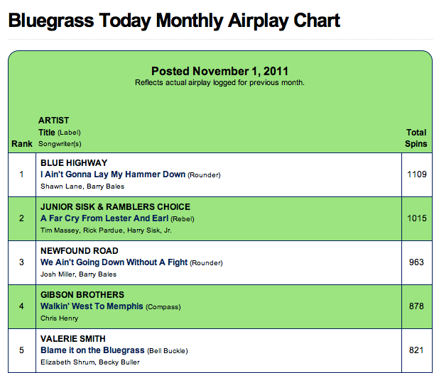 Both are generated by reports from more than 100 bluegrass radio hosts across the US.