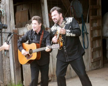 That scene was a shot on the front porch of the farm house with 20 or so people, and we had a 5-piece band with Steve and I along with Molly Cherryholmes on fiddle, Sim Daley on banjo and our bass player Matt Wallace.