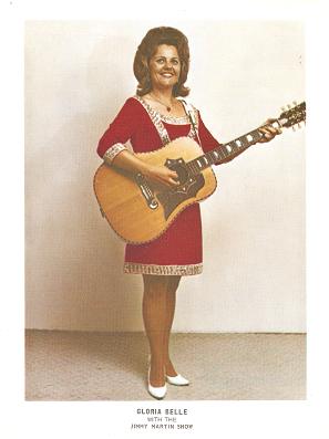 That summer she became the first female to have a release by Rebel Records Gloria Belle sings and Plays Bluegrass in the Country (Rebel R-1479); twelve songs that feature her playing banjo, lead guitar and mandolin as well as her singing the lead part on all tracks. Billy Edwards (banjo), John Palmer (bass) and Tater Tate (fiddle) played on part of the album.