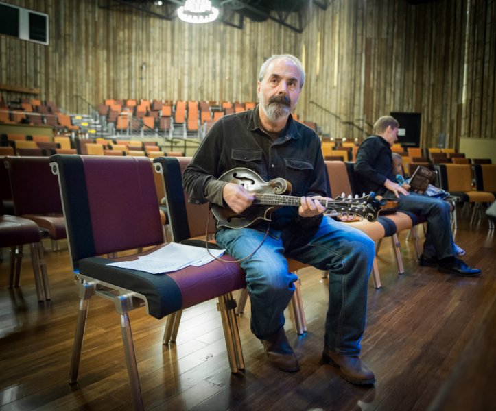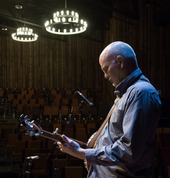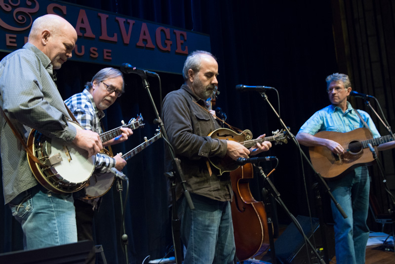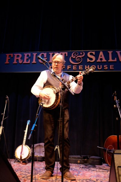 Assisting were Jim Nunally on guitar, John Reischman on mandolin, Chad Manning on fiddle, and Sharon Gilchrist on bass. Bill told us that it was fascinating to watch and listen to this bunch of ezra talented players adapt their approach and where they focused the rhythm based on the different ways each banjo player