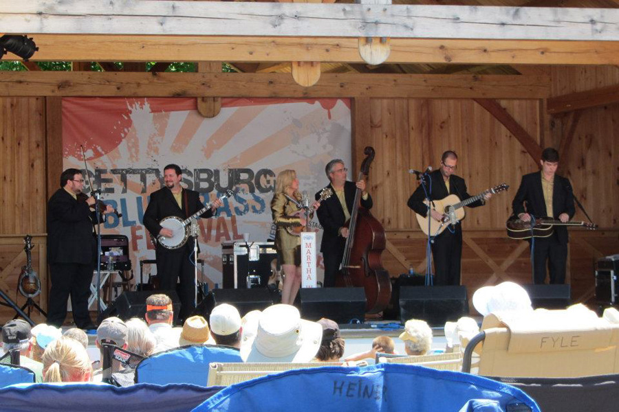 It’s members of Seldom Scene and The Hillbenders sharing a light moment between sets.