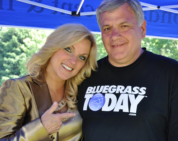 We are still awaiting Frank Baker’s photos from this past weekend’s Gettysburg festival, but Rhonda Vincent sent a couple along this morning. She captured this particularly well-dressed fan at her record table on Saturday afternoon.