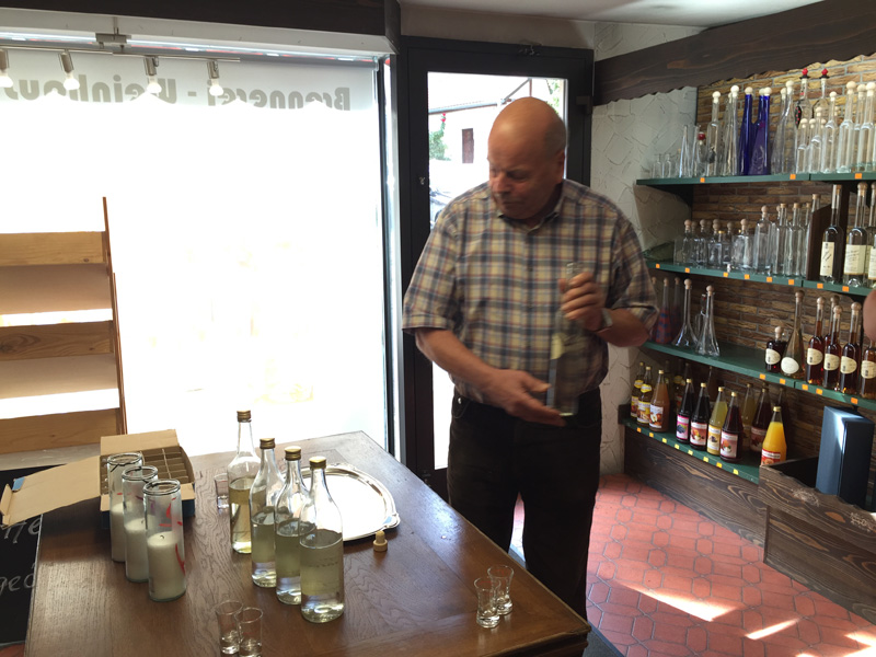 After a short nap, we proceeded into town to a local distillery. Marvin Wandel is a 78 year old cooper and distiller, making schnapps for over 50 years, an occupation passed down from generation to generation. He showed us his still, 70 year old barrels filled with his brews and all the old tools that date back even further. After sampling three delightful schnapps of raspberry, plum, and pear, Marvin presented us with a bottle of Pear Schnapps to take along on our journey. Marvin and his wife were a special treat that we weren’t expecting at all.