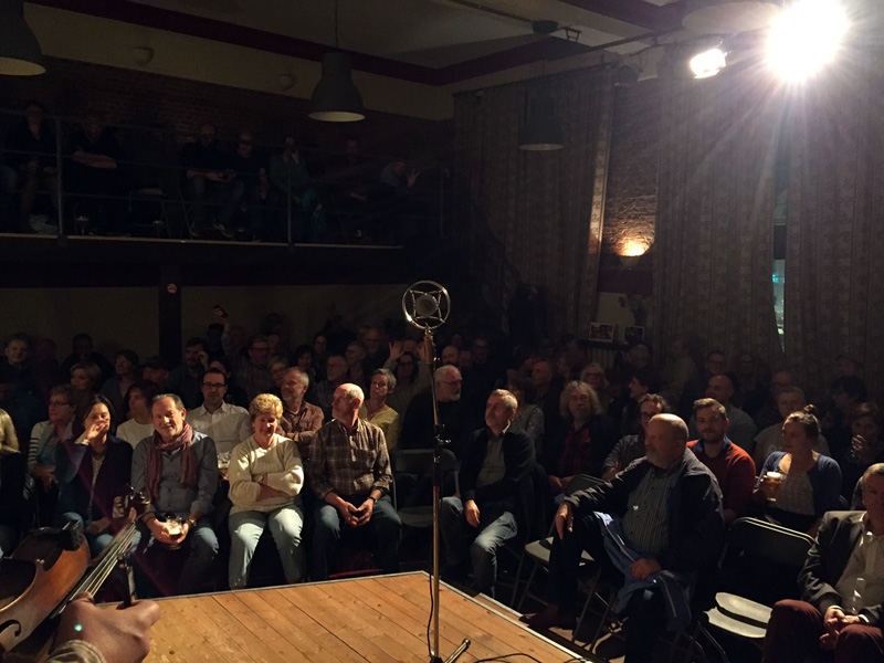 Our show was scheduled for 8:30 p.m. just a few kilometers from Antwerpen, so we departed from Jozef and off to Lier, Belgium we sprinted. The first show of the tour always makes you a hair nervous, but it was sold out a few weeks ago, and we went in with confidence after hearing that. De Valk was an awesome room on a second story overlooking the town hall (built in 1369) through hand poured glass windows. Ripspique was the group of folks that hosted The Po’ Ramblin’ Boys and sure do know how to host. Incredible dinner, awesome setting and sold out house. Billy fiddled his rear off, Jasper held it all together, Jereme laid the thumb to it, and Adam came right in there like we had been picking with him for years. The first concert of the tour couldn’t have gone any better! We sure hope we didn’t disappoint any of the folks, but we sure had fun. The kickoff to the tour is over and in the books.
