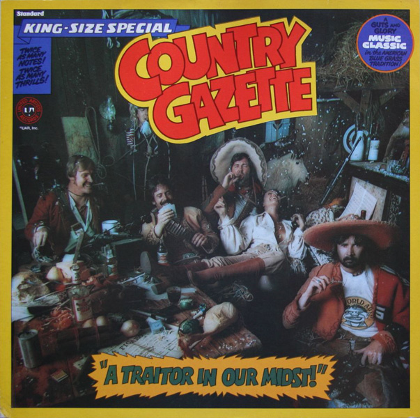 KD: I remember the first time ever hearing about the Country Gazette. I was at a dinner party and they were selecting music to play during dinner. Someone held up an album and asked if I had ever listened to it. It was Traitor in Our Midst. I replied, what is that? They said it was bluegrass. THAT album is bluegrass?? (chuckle) The album cover itself was an astonishing wonderfulness. Is that a word? For me, one of the most influential groups I ever heard was the Country Gazette.