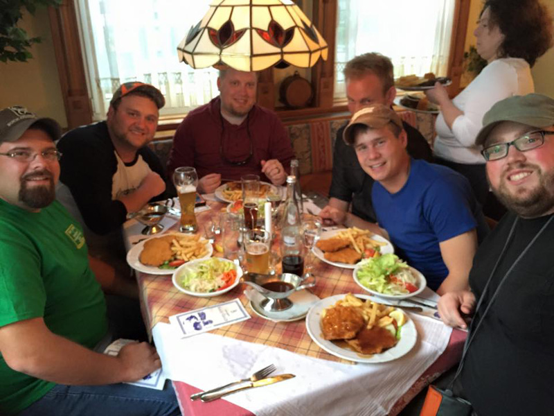 “Everything started well with a sold out show in Heiligenhaus (holyhaus=translated).Their first meal was a dinner of Schnitzel variations and good Hefeweizen, well known local products.