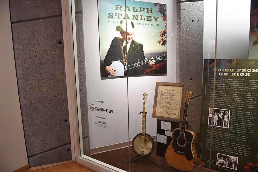 Last Thursday, July 12, the Country Music Hall of Fame & Museum in Nashville celebrated the opening of their new Ralph Stanley exhibit, Voice From On High, with a private reception in the Museum. Dr. Ralph’s son, Ralph Stanley II, was in attendance with members of his family, including his mother, Jimmie Stanley, and members of The Clinch Mountain Boys.