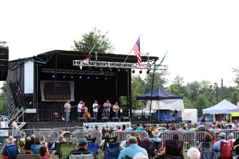 Sweltering heat couldn’t keep fans from coming out to the first day of Red, White & Bluegrass in Morganton, NC this past Thursday. Although temperatures hovered near 90 for much of the day, a full afternoon and evening of bands kicked the festival’s eleventh year off in style. I had the pleasure of attending the festival for the first time this year, and quickly found out that it’s one of the finest bluegrass events around.