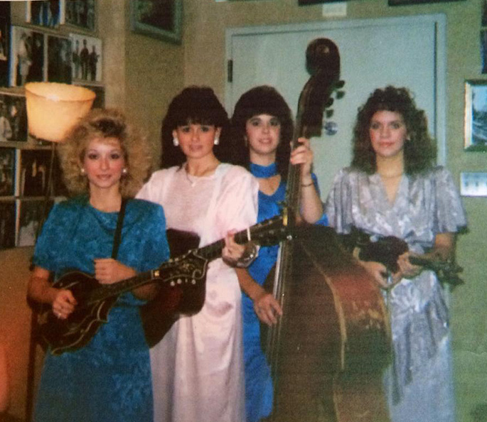 And while we’re remembering the ’80s, have a look at this photo which Andrea Roberts shared. Andrea (then Mullins) is on guitar, Ginny Brawner on bass, Sonya Rutledge on mandolin, and Alison Krauss on fiddle.