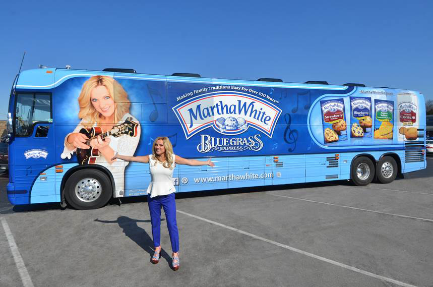 rhonda_busRhonda Vincent has unveiled the latest iteration of the Bluegrass Express, her tour bus which also serves as a rolling billboard for both her and Martha White.