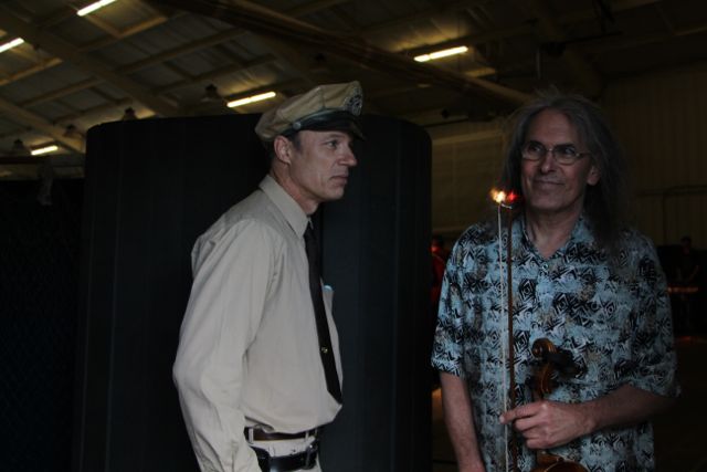 Mark Schatz tells Rooster stories at Roosterfest - April 21, 2013 - photo by Tara LinhardtThe folks on stage were telling their Rooster stories, as were folks all around Roosterfest. Mark Schatz told a few great ones like the one where he first met Rooster. Mark had a gig in Lexington and ended up needing a bass for the show. Rooster showed up with two basses for him to chose from. Neither one was set up like Mark was used to, so Rooster got out an old hack saw and cut that neck down to Mark’s specs right there.