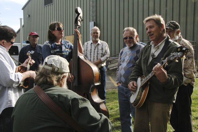 The first band of the day was Burr Datz and his large bluegrass band assortment of fine pickers from many ages and walks of life. From that point on there was music on and off stage for the rest of the day. There was straight ahead bluegrass, old time, jazz grass, and sure enough some “what-not” or “other” category going on. Steve Holk, The Hall Brothers, Nothin Fancy (with a few different folks than usual) Ricky and Will Lee and Ruth Huffman and their gang, and many more.