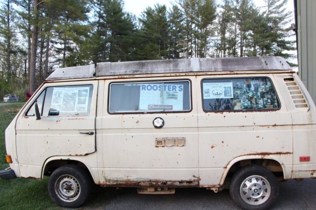 Rooster's van at Roosterfest - April 21, 2013 - photo by Tara LinhardtRooster’s van was on display there too. It had actually been driven to its location there. I remember many a time when Rooster had towed his little van into a festival so that he could camp in it, and then towed it back home.