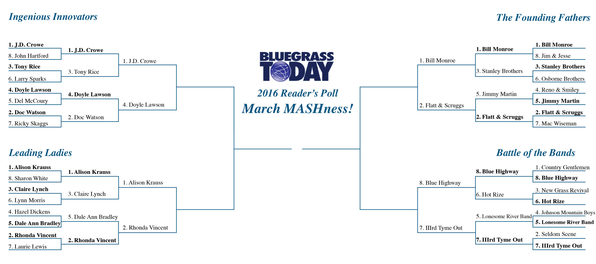 Here we are at round three of our 2016 March MASHness readers poll to determine the top bluegrass performer of all time! We had meant to get this up on Friday, but alas.