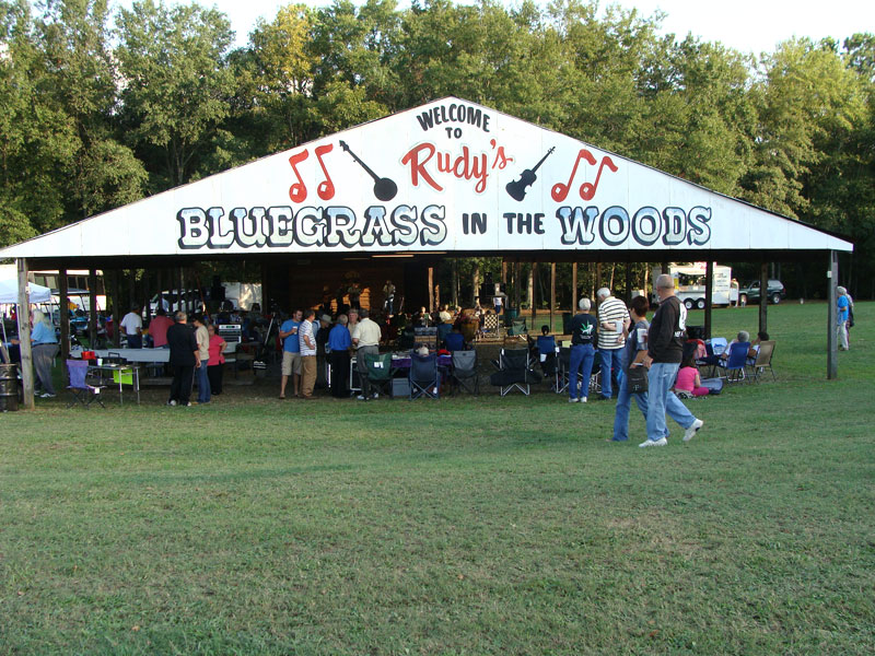 Rudy’s Bluegrass in the Woods is as comfortable and cozy a site for a bluegrass festival as you will find in the South. Located in rural Anderson, SC, Rudy’s was established by the late Rudy Lowe. It is now owned and managed by his son, Stephen Lowe, a great friend to bluegrass music. The site features an outdoor stage with 5000 covered square feet for the audience, located on 60 acres of rolling South Carolina farm land. For those into the RV-ing lifestyle, Rudy’s can accommodate 90 units with hookups. What makes this an ideal setting for camping is that the stage can be seen (albeit at a distance) and heard from the campsites.