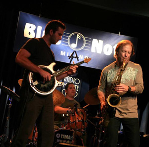 Bill Evans is on saxophones, myself on banjo, Mitch Stein on electric guitar, Josh Dion on drums and vocals, and African/euro bassist extraordinaire Etienne Mbappe.”