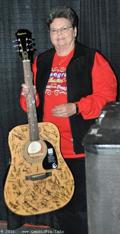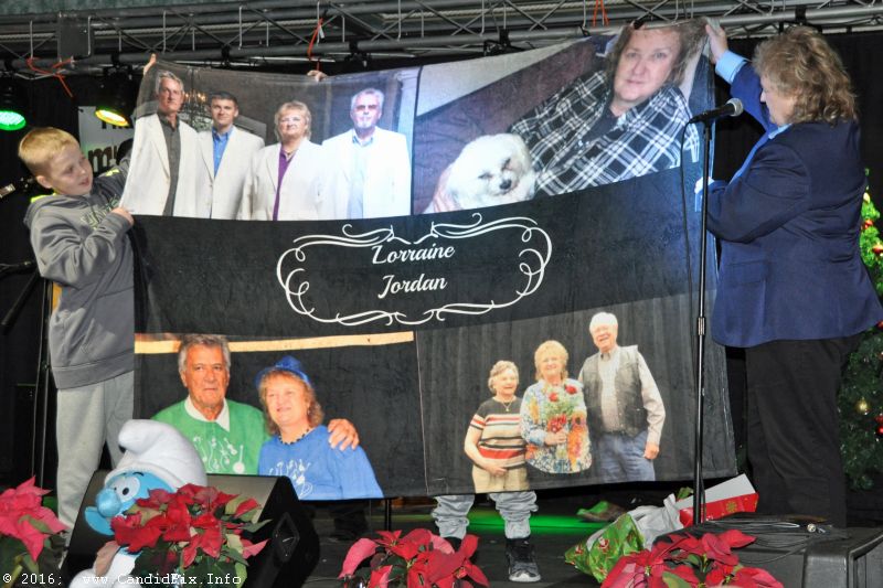 Host Lorraine Jordan brought her volunteer crew to the stage to be recognized. She also brought the winners of the autographed guitars to the stage. The Efaw family presented Lorraine with a memory quilt.