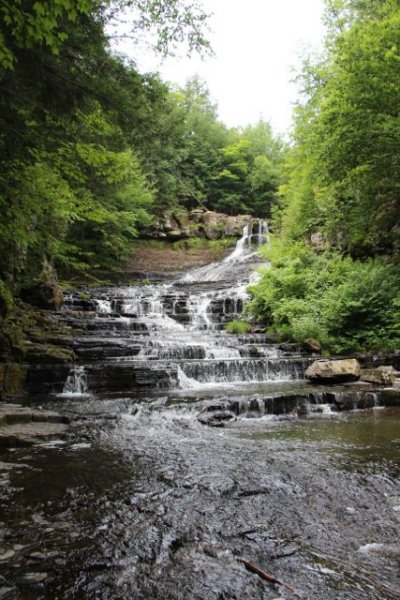 Waterfall in the Huyak Preserve near the site of Grey Fox 2013 - photo by Tara LinhardtBefore starting to festival mode this morning, I discovered that this area has loads to offer folks who might be interested in hiking around, checking out waterfalls, etc. (For info about such things one can contact www.HuyakPreserve.org.) With help from one of their friendly members, I was turned on to some great trails and a lovely waterfall, and then found some great views of the festival from some of the surrounding hillsides.