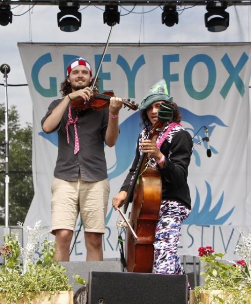 Rushad Eggleston and Duncan Wickel at Grey Fox 2013 - photo by Tara LinhardtI started my day with the Rushad Eggleston and Duncan Wickel show on the main stage. I’ll tell you what, that is some seriously unique stuff! Rushad jumps all over the stage while playing his cello, never skipping a beat, and plays in all sorts of different styles. Maybe it is best if I just put a few photos and links and let you see for yourselves. He was partnered with a great fiddle player named Duncan Wickel, and they did some things I bet many in the audience never expected to see on stage.